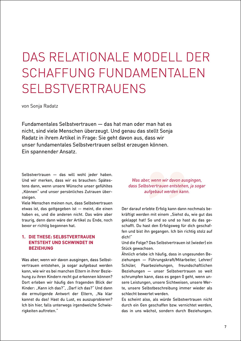 Fundamentales Selbstvertrauen — das hat man oder man hat es nicht, sind viele Menschen überzeugt. Und genau das stellt SonjaRadatz in ihrem Artikel in Frage: Sie geht davon aus, dass wir unser fundamentales Selbstvertrauen selbst erzeugen können. Ein spannender Ansatz.